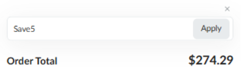 - Apply the Code: Click the "Apply" button to apply the promo code to your order. You should see the discount reflected in your order total.