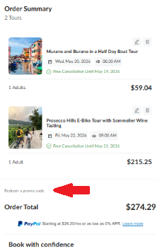 Here’s a step-by-step guide to help you redeem your promo code while making a purchase on The Tour Guy's website. Check out The Tour Guy's current promotions on our Verified Promo Codes and Discounts article.